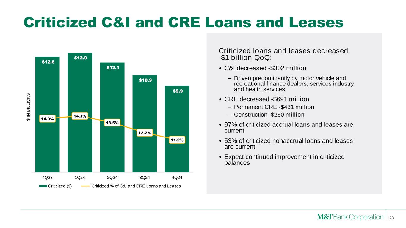 Credit Metrics Nonaccrual Loans and Leases Net Charge-offs Provision for Credit Losses Allowance for Credit Losses 27 $225 $200 $150 $120 $140 4Q23 1Q24 2Q24 3Q24 4Q24 $ I N M IL L IO N S$148 $138 $137 $120 $160 0.44% 0.42% 0.41% 0.35% 0.47% 4Q23 1Q24 2Q24 3Q24 4Q24 $ I N M IL L IO N S NCO ($) Net Charge-off Ratio (%) $2,166 $2,302 $2,024 $1,926 $1,690 1.62% 1.71% 1.50% 1.42% 1.25% 4Q23 1Q24 2Q24 3Q24 4Q24 $ I N M IL L IO N S Nonaccrual Loans and Leases ($) Nonaccrual Loans and Leases (%) $2,129 $2,191 $2,204 $2,204 $2,184 1.59% 1.62% 1.63% 1.62% 1.61% 4Q23 1Q24 2Q24 3Q24 4Q24 $ I N M IL L IO N S Allowance for Credit Losses ($) Allowance for Credit Losses (%)